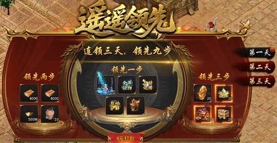 一,遥遥领先活动内容:充值对应金额,可连续3天领取奖励。